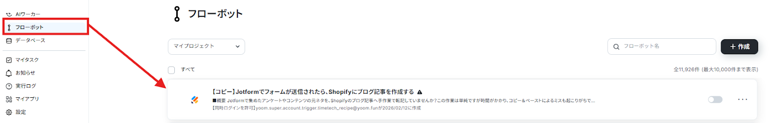 また、コピーしたテンプレートはフローボットに保存されているので、ここからも開くことができます。