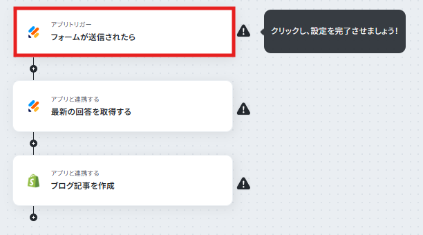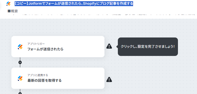それではここから代表的な例として、Jotformでフォームが送信されたら、その内容をもとにShopifyにブログ記事を自動で作成するフローを解説していきます!