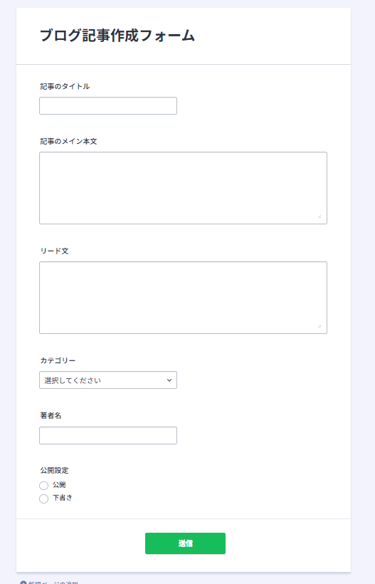 今回のフローはJotformの回答からShopifyのブログ記事を自動作成するので、事前にフォームを作成しておきます。
