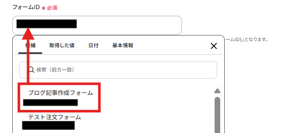 フォームIDをボックスの候補から選択します。
