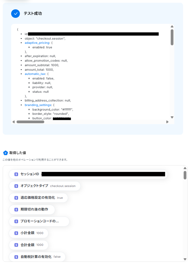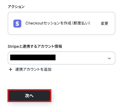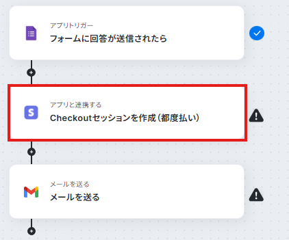 フローに戻り、「StripeのCheckoutセッションを作成」をクリックしてください。