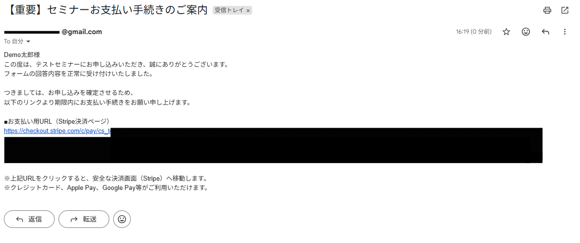 Googleフォームで回答が送信されたら、StripeでCheckoutセッションを作成しGmailで通知する