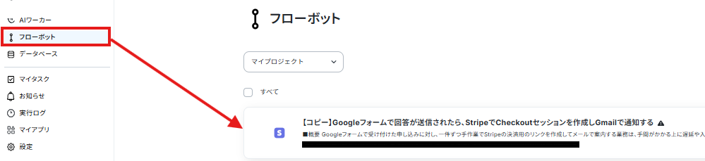 また、コピーしたテンプレートはフローボットに保存されているので、ここからも開くことができます。