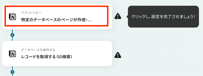 続いて、今回のフローで監視するNotionデータベースを指定します。