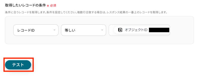 ここでは、ステップ3で取得したオブジェクトIDと、データベースのレコードIDが一致するデータを取得するようにします。