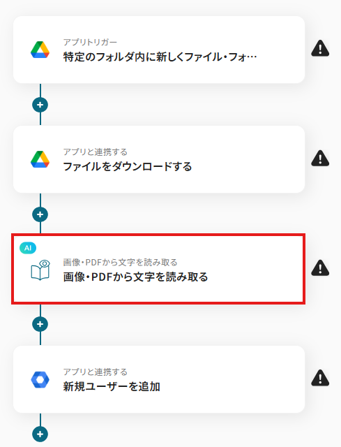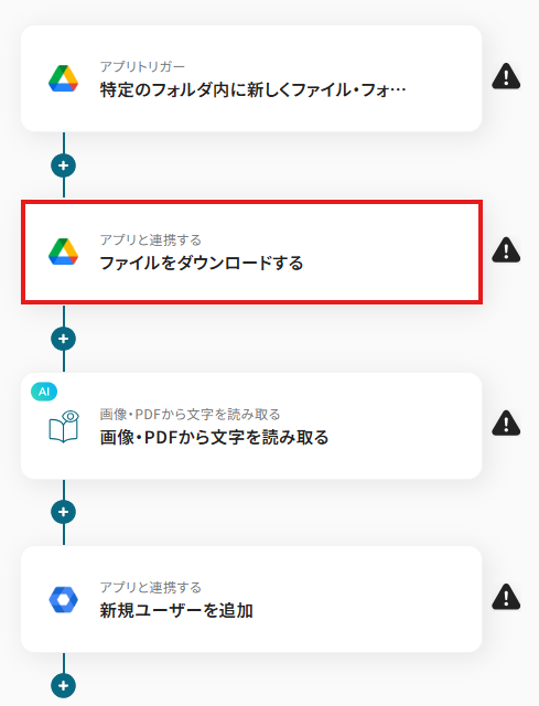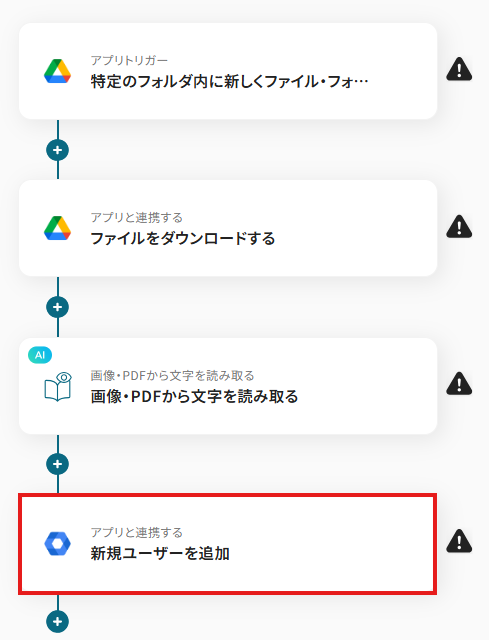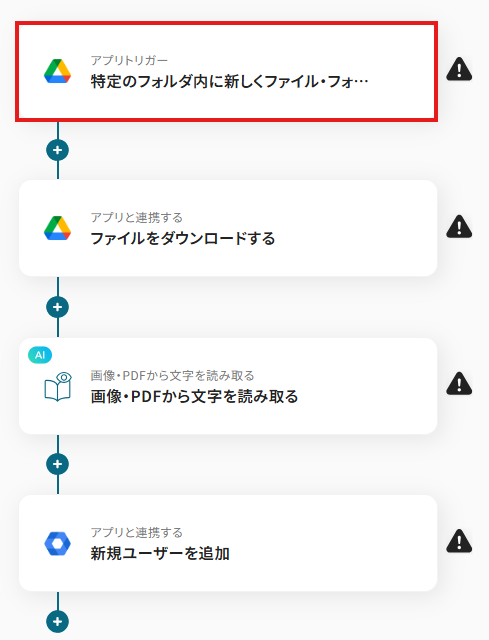 それではここから代表的な例として、Google Driveに特定のファイルがアップロードされた際に、ファイル内の情報をOCRで自動的に読み取り、そのデータを使ってGoogle Workspaceに新規ユーザーアカウントを自動で作成するフローを解説していきます!