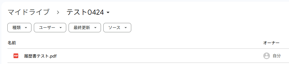 連携前に、Google Driveにファイルを追加しておきましょう! ※今回は、以下画像のようなファイルを追加しました。