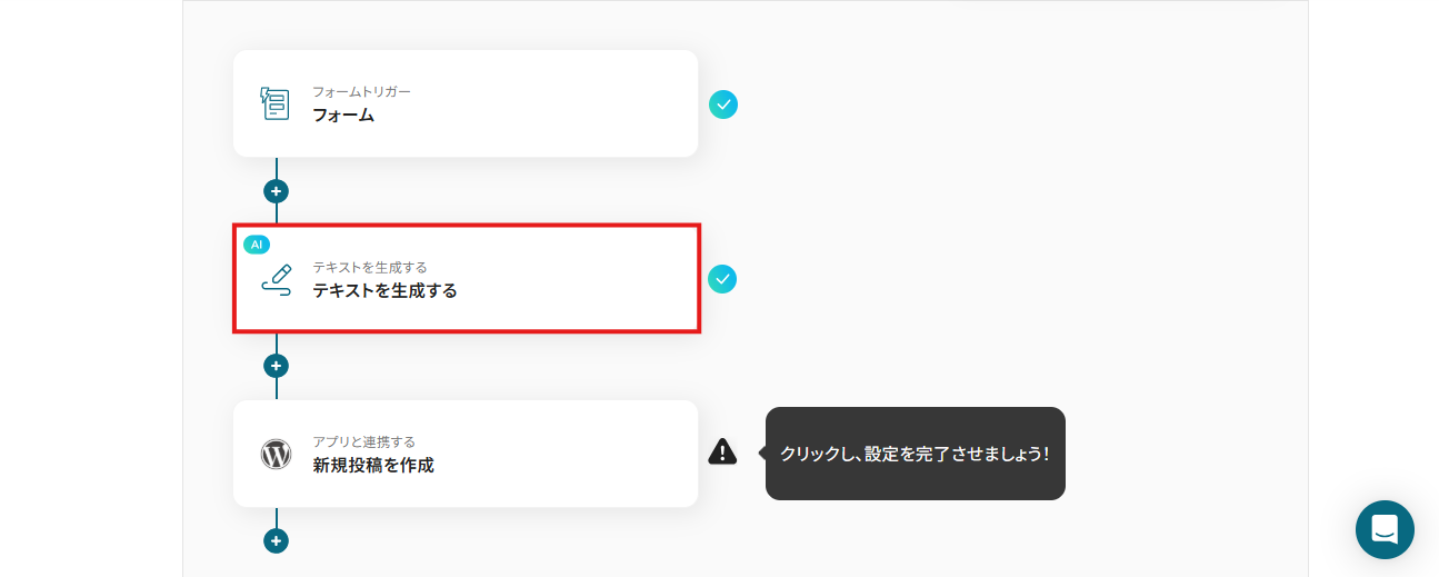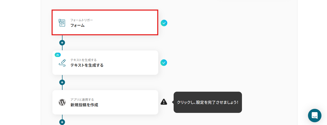 これで、「フォームの情報をもとにコンテンツを生成し、WordPressの投稿を自動作成する」フローの完成です。