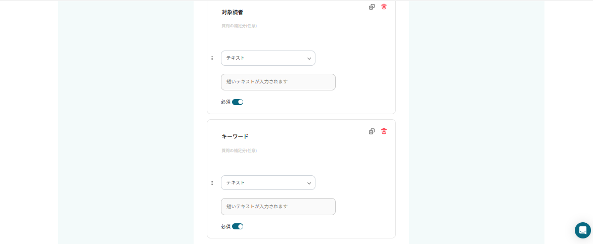 なお、質問項目を追加したい場合は、「+質問を追加」をクリックしましょう。