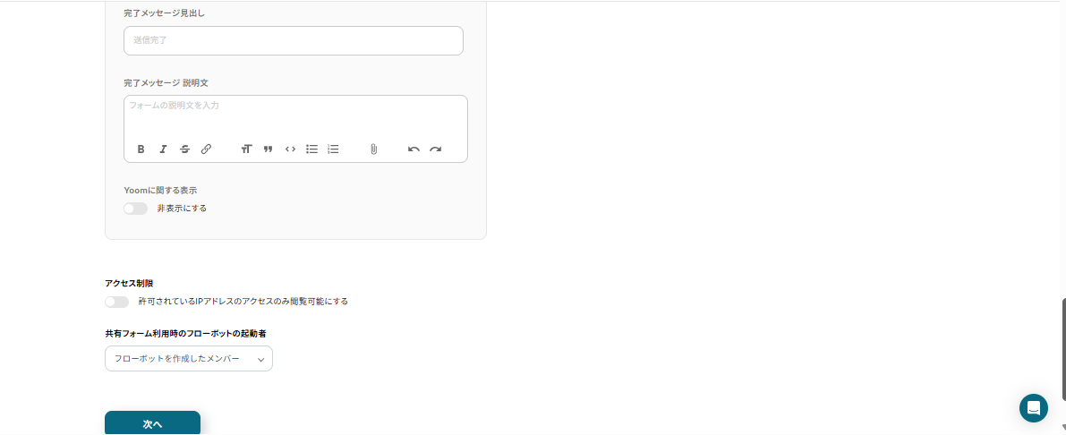 設定が完了したら、画面下部にある「次へ」をクリックしましょう。
