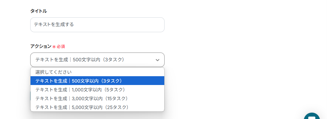 文字数により使用するタスク数が異なるので、適切な文字数を選択しましょう。