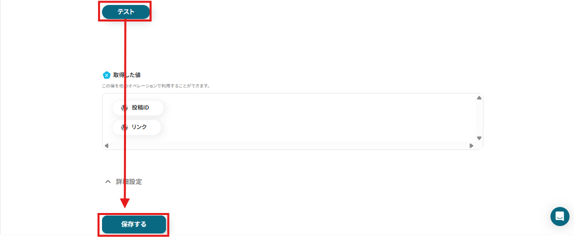 設定の確認ができたら、テスト実行後、設定を保存しましょう。