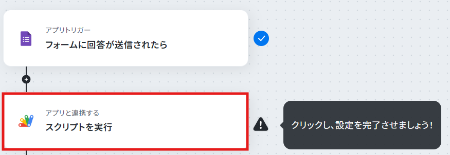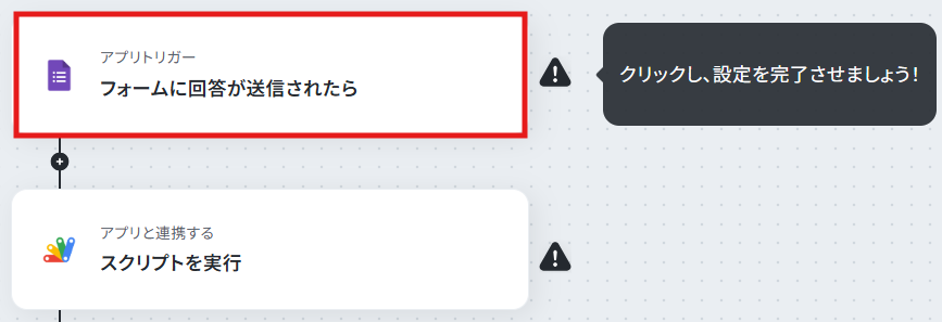 ステップ4:Google Apps Scriptのアクション設定 次に、フォームトリガーをきっかけにGoogle Apps Scriptのスクリプトを実行する設定を行います。