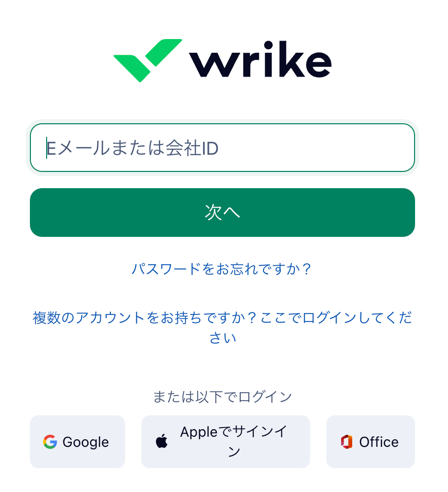 Wrikeのログイン画面が表示されるので、Yoomと連携するアカウントでログインしましょう。