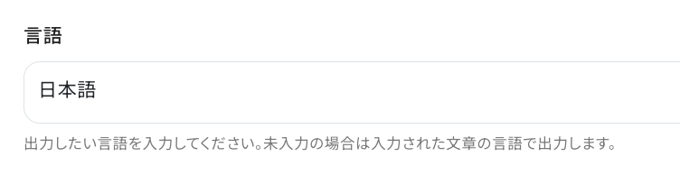 特に設定を行わなかった場合は、プロンプトに入力された言語に合わせて出力されるので、こだわりがなければ空欄でも問題ありません。