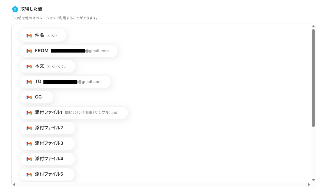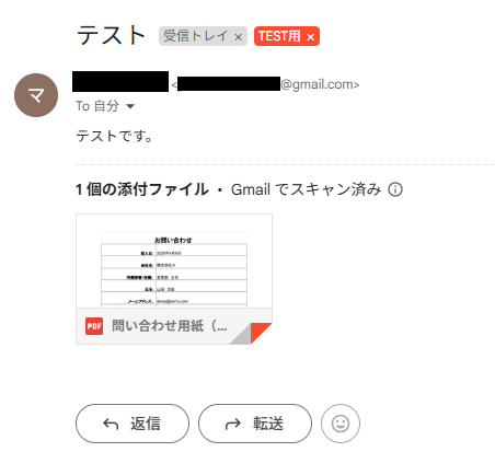 連携前に、Gmailにファイルを送信しておきましょう! ※今回は、以下画像のようなメールを送信しました。