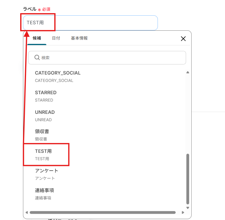 4.「ラベル」は、入力欄をクリックして表示される候補から選択してください。