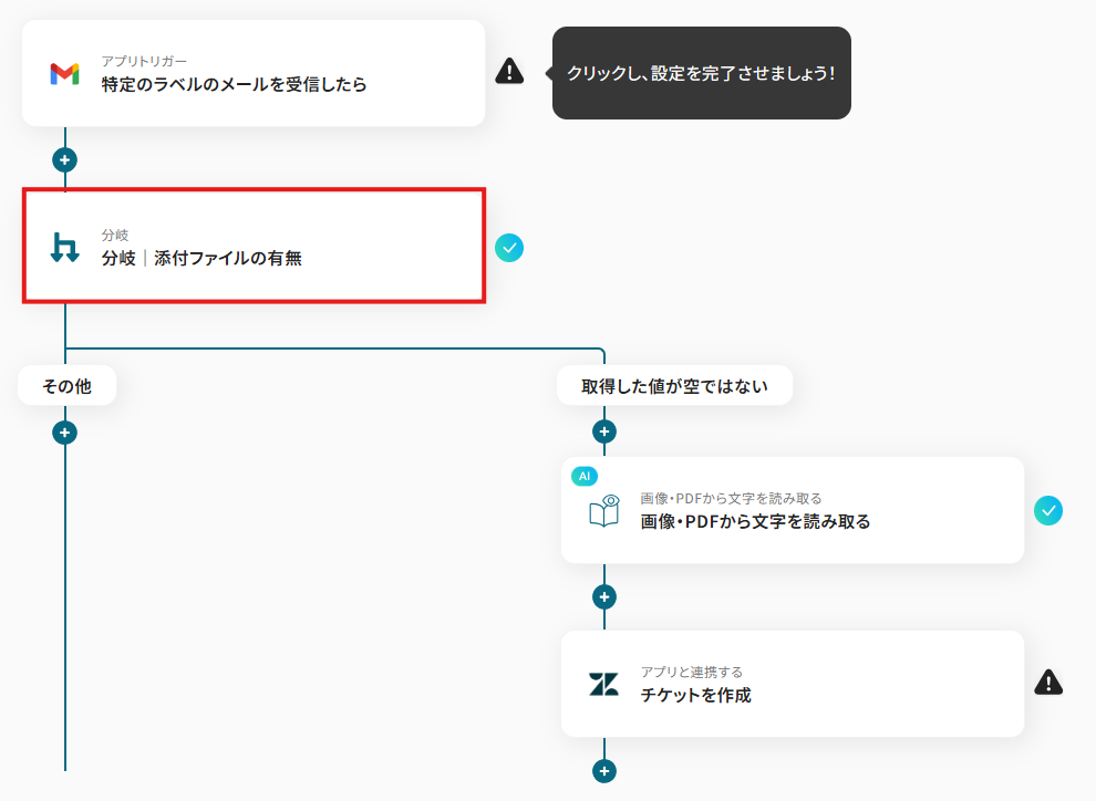 1.分岐「分岐|添付ファイルの有無 」をクリックしてください。
