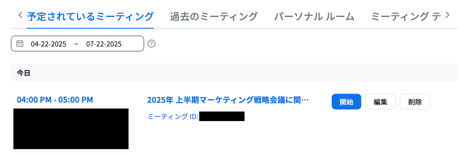 Zoomの画面に移り、作成されたミーティングの内容を確認しましょう。