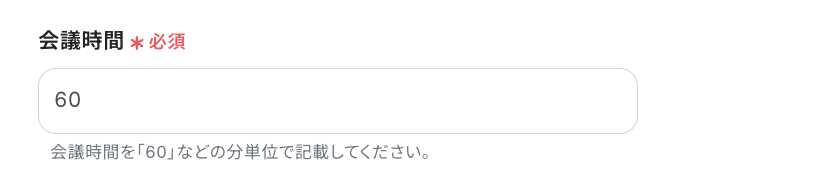 会議時間はデフォルトで60分と設定されていますので、変更する場合は任意の値を入力してください。