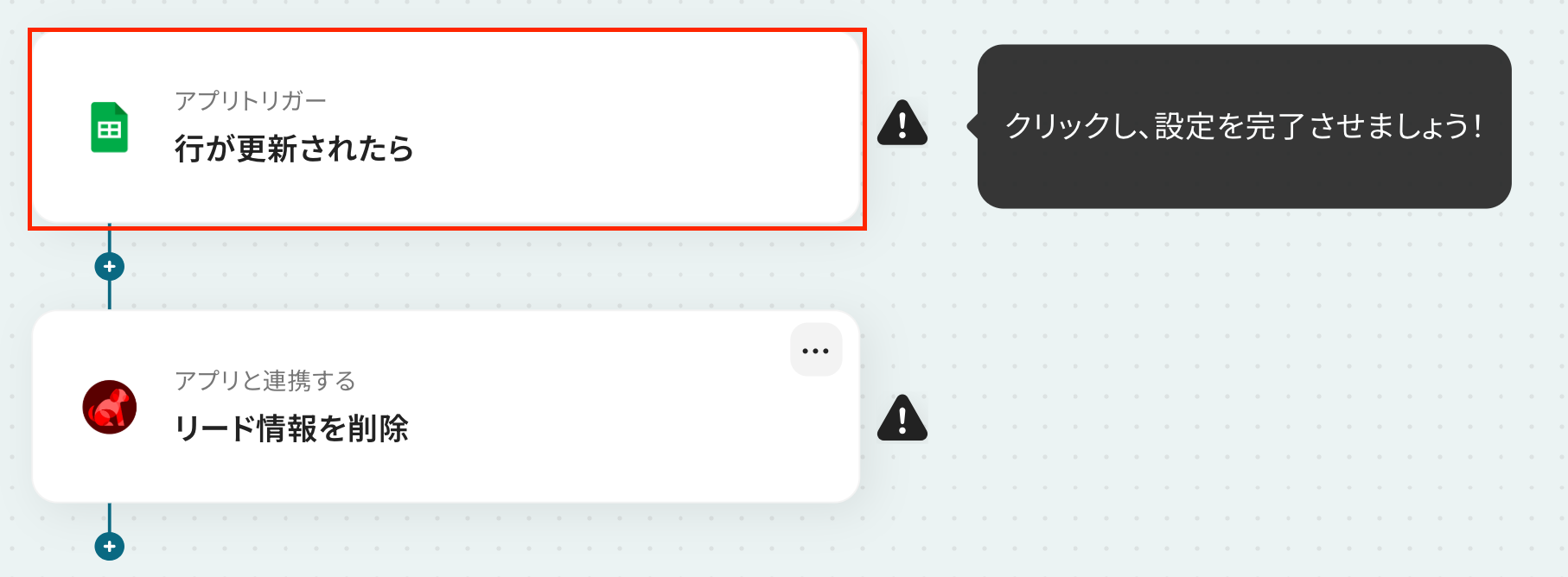 以上で、「Google スプレッドシートでステータスが更新されたら、BowNowでリード情報を削除する」フローの完成です!