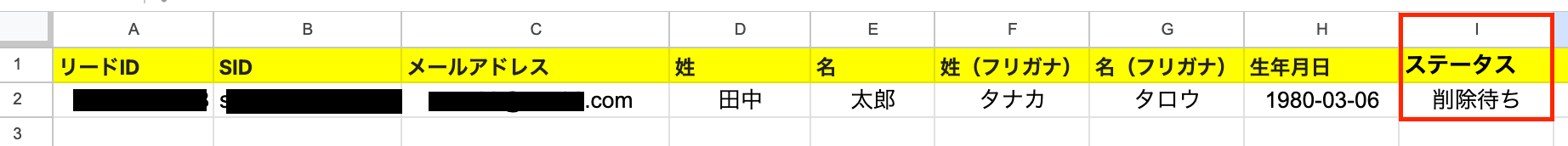 ※使用するシート内には、「ステータス」列と「SID」列を必ず追加してください。