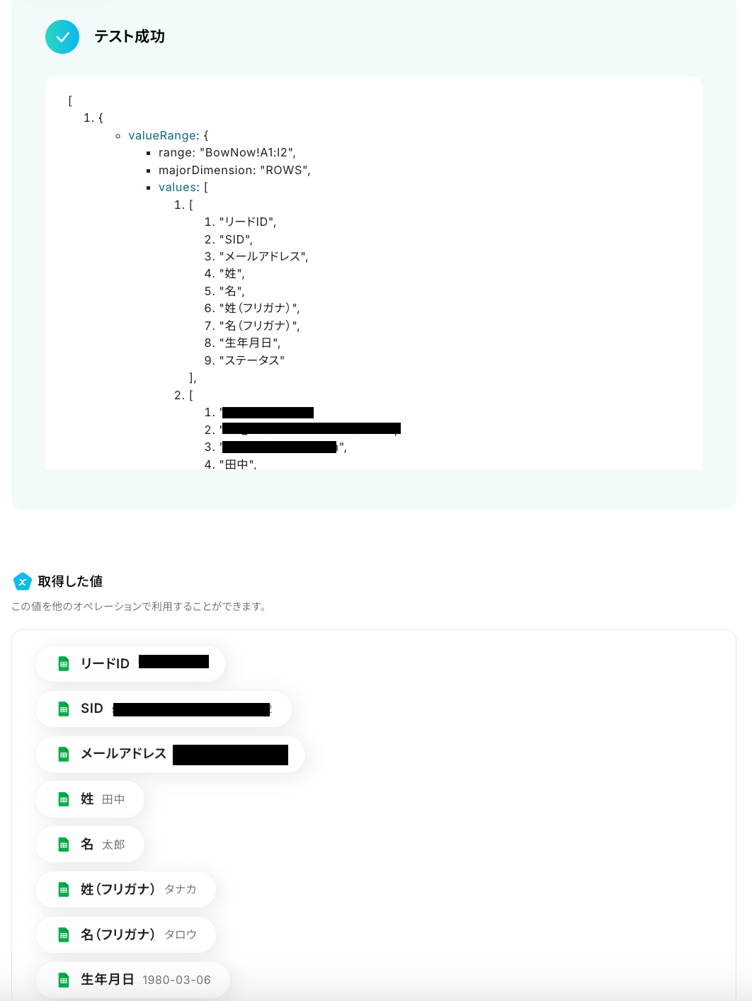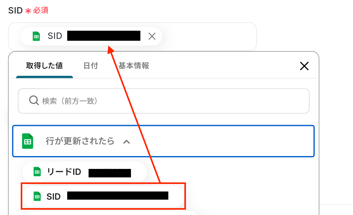 SID:Google スプレッドシートのトリガーで取得した値を引用してください。