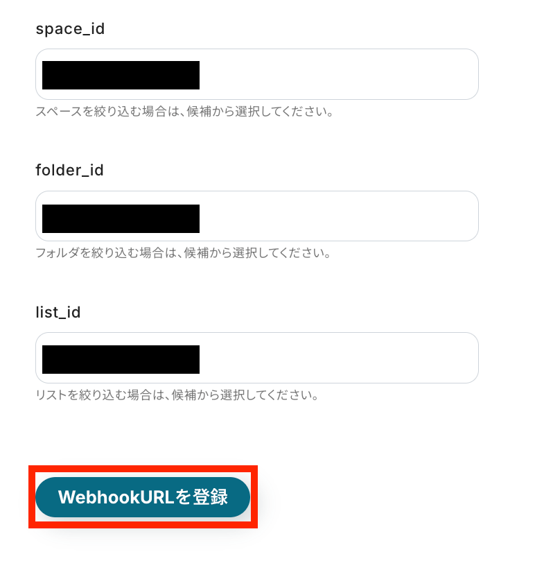その他も任意で設定して、設定が終わったら「WebhookURLを登録」ボタンを押します。