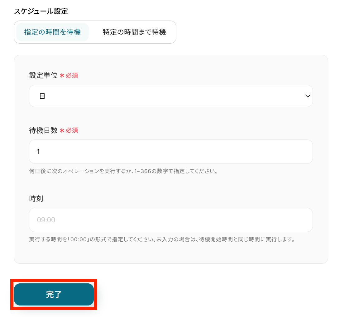 ・「待機する」の操作は、チームプラン・サクセスプランでのみご利用いただける機能となっております。フリープラン・ミニプランの場合は設定しているフローボットのオペレーションやデータコネクトはエラーとなりますので、ご注意ください。