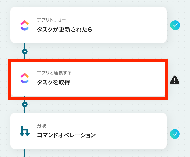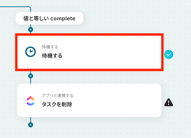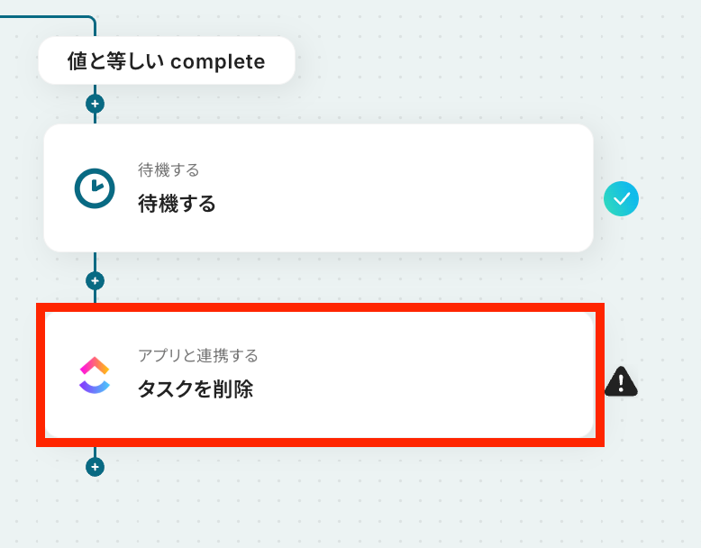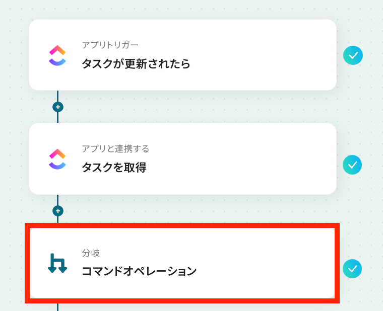 ※このように設定することで、ClickUpのタスクのステータスがcompleteになっている場合のみ分岐します。