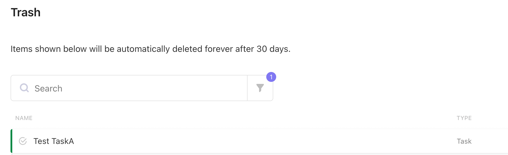 Trash(ゴミ箱)に削除されたタスクが確認できます。