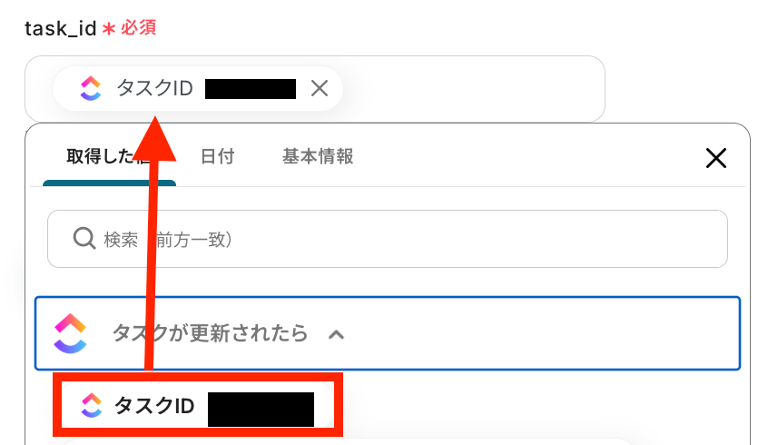 取得したタスクIDを設定します。