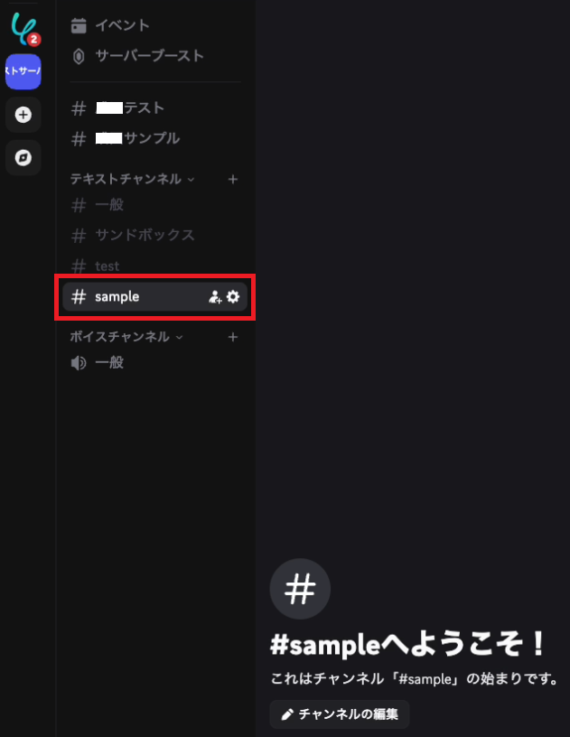 今回は例として「sample」チャンネルを作成しました。
