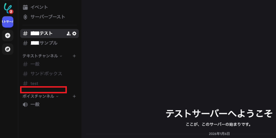 まず、テスト用に削除してよいDiscordチャンネルをご用意ください。