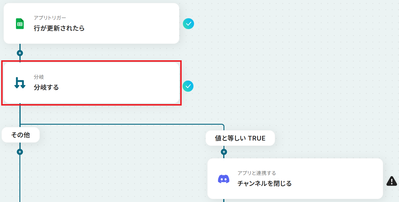 Google スプレッドシートのトリガー設定、分岐設定、Discordのアクション設定