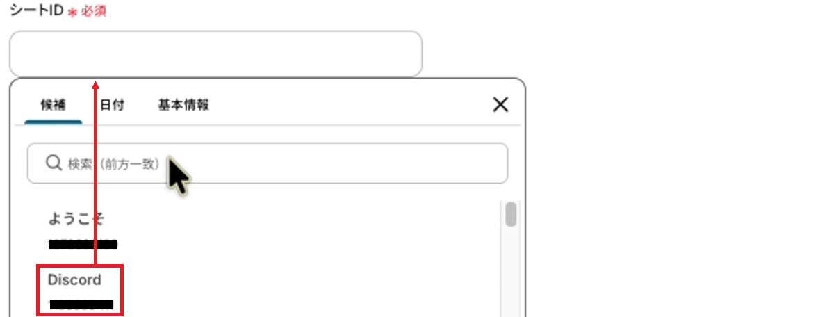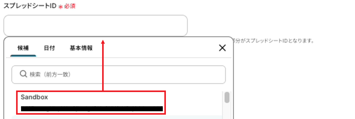 次に、連携するスプレッドシートID・シートIDを候補から選択してください。