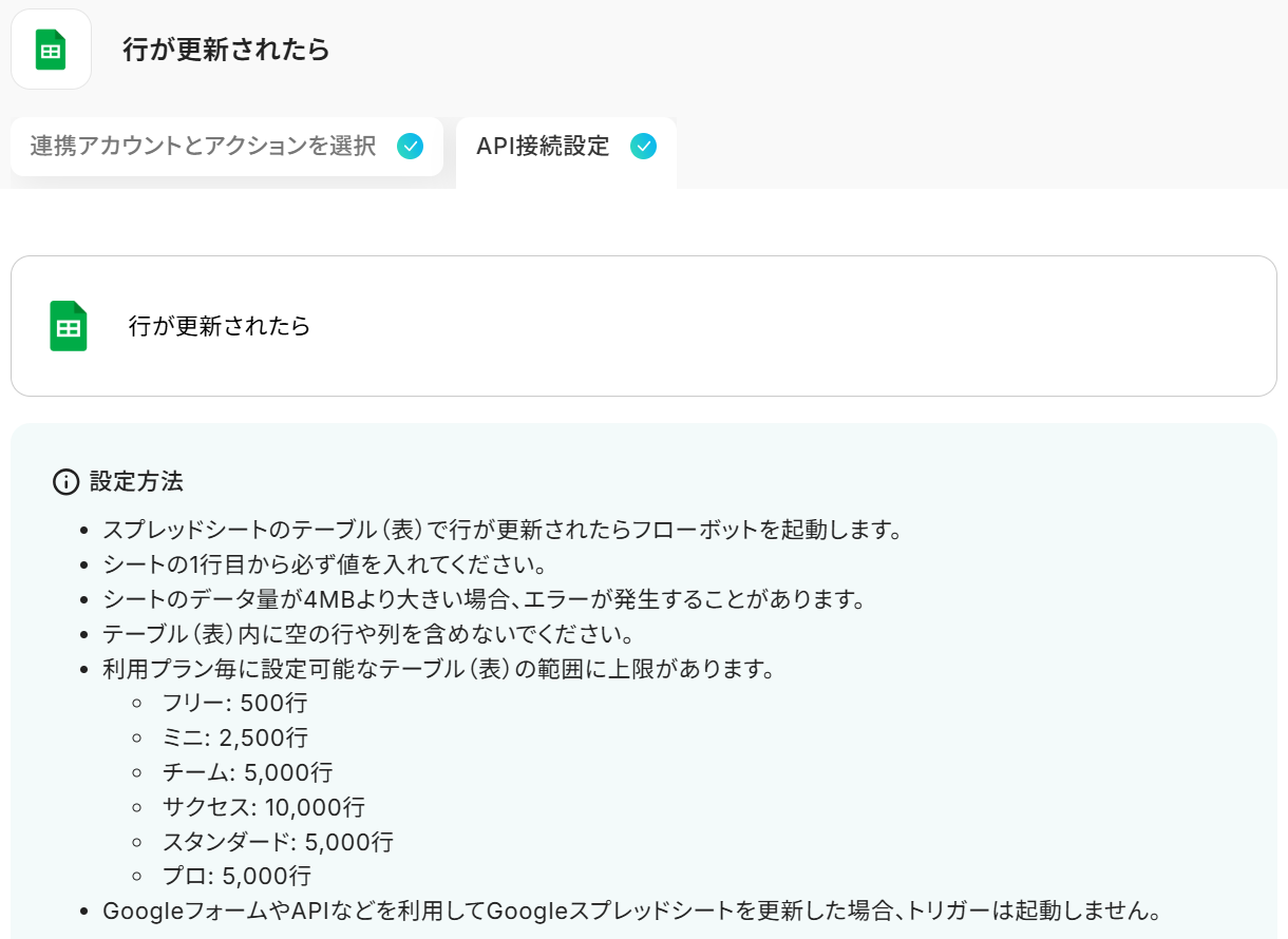 ※Googleスプレッドシートをアプリトリガーとして使用する際の注意事項は