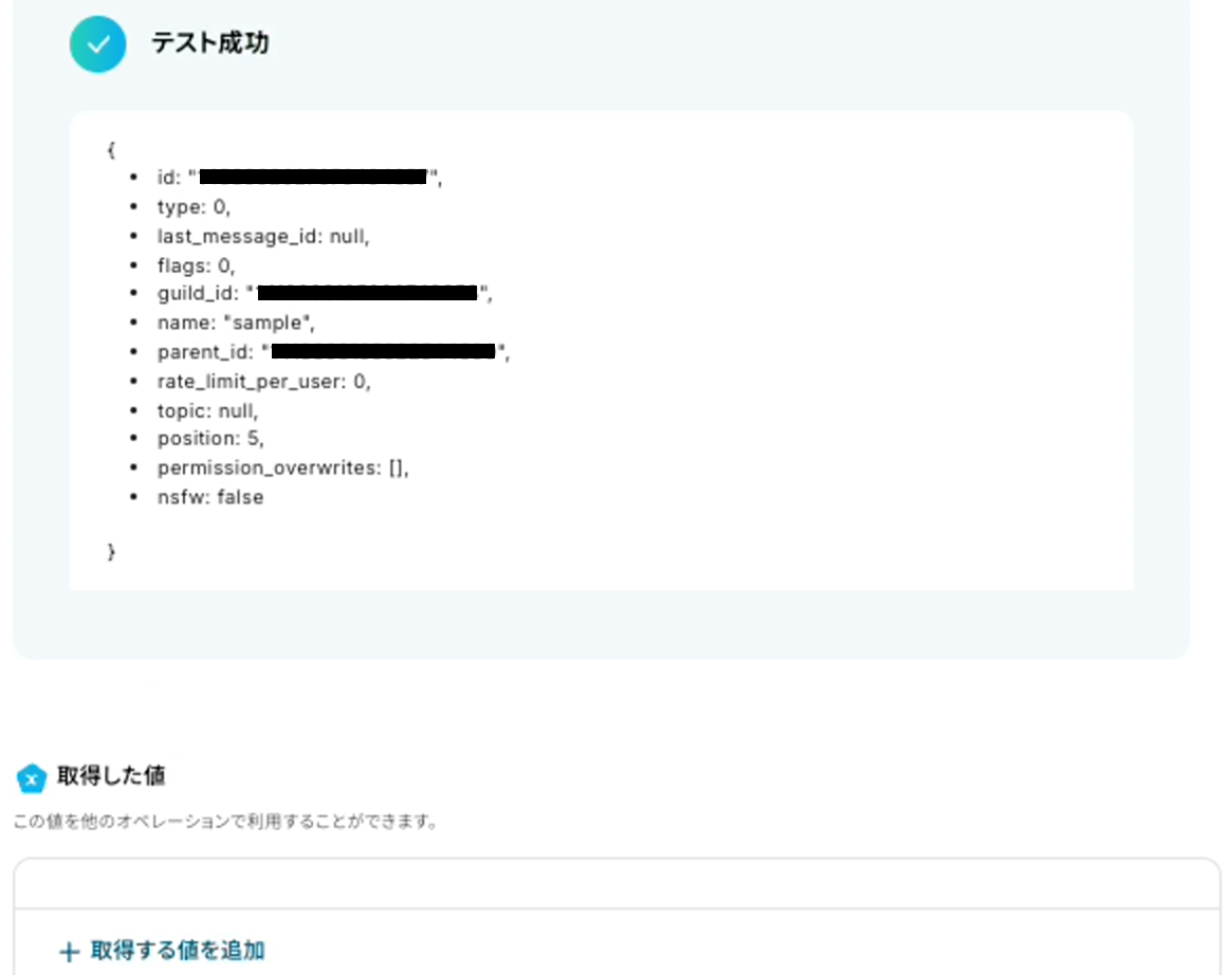 成功したら保存してください。ここで取得した値を次以降のステップで活用します。