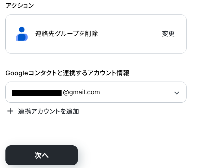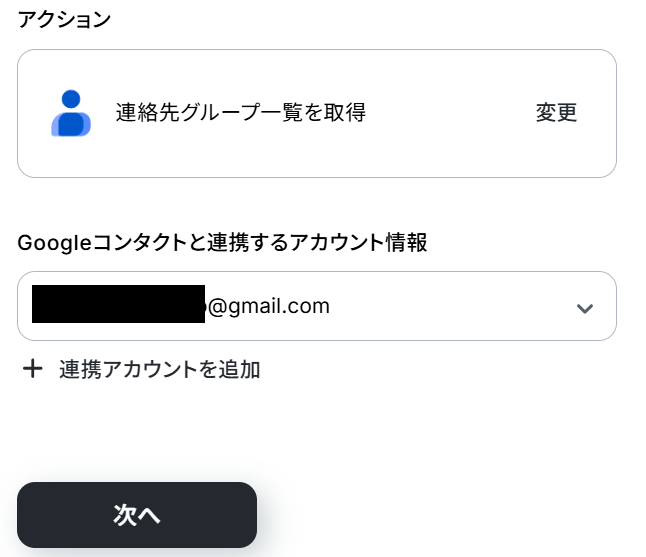 Googleコンタクトと連携するアカウント情報は、自動化に使用したいアカウントが選択されているか確認してください。
