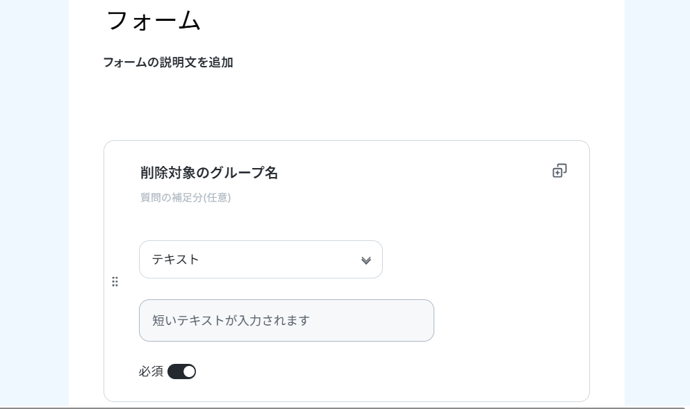 - フォームトリガー機能では、削除したい連絡先グループを指定するための入力項目などを任意でカスタマイズしてください。