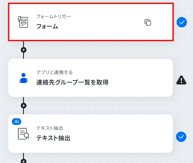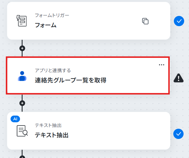 - フォームトリガーとGoogleコンタクト・テキスト抽出のアクション設定