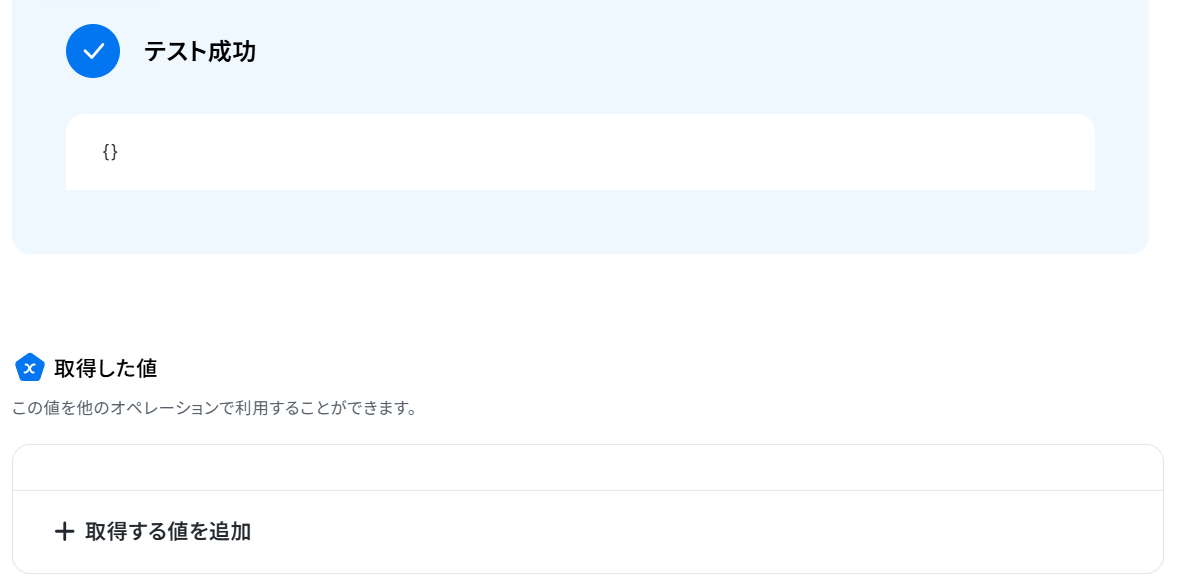 テストが正常に完了すると、「取得した値」に抽出された結果が表示されます。