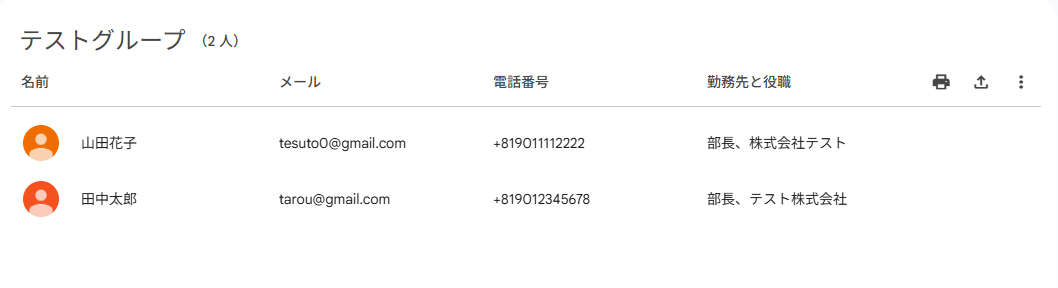 Googleコンタクトにテストで削除するための連絡先グループを作成しておきましょう!