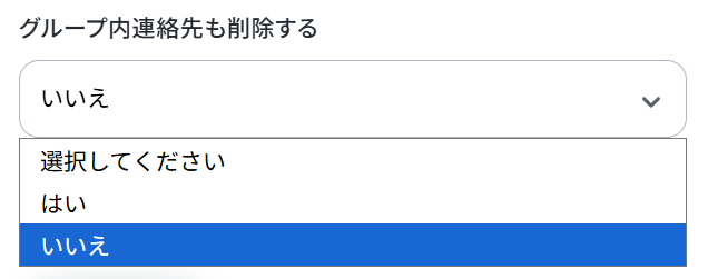 グループ内連絡先も削除するかは、用途に合わせてプルダウンを選択してください。