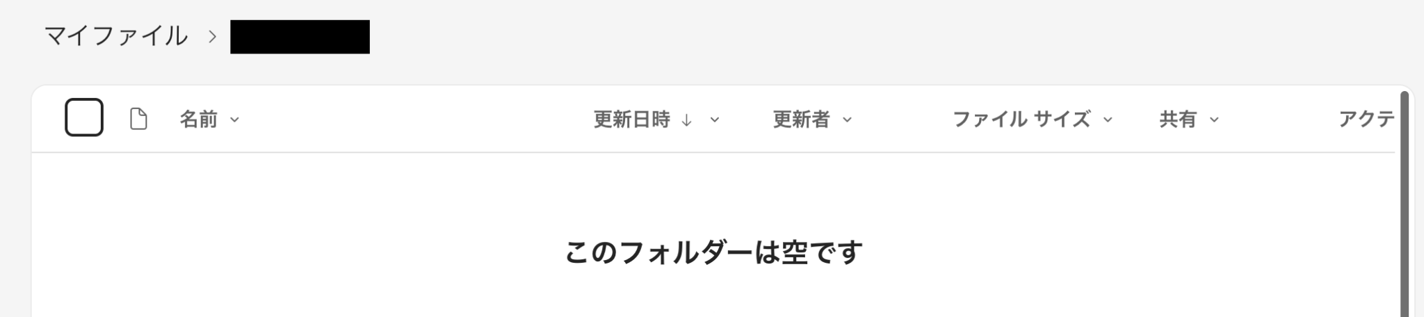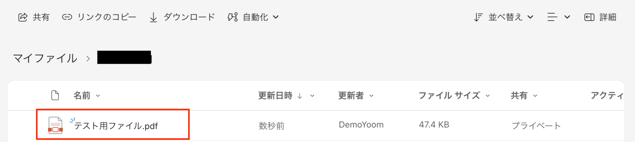 ここで、OneDriveの画面に移動し、特定のフォルダにテスト用のファイルを作成してください。