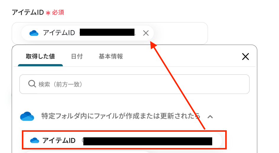 フォルダID:「候補」から対象となるフォルダを選択しましょう。