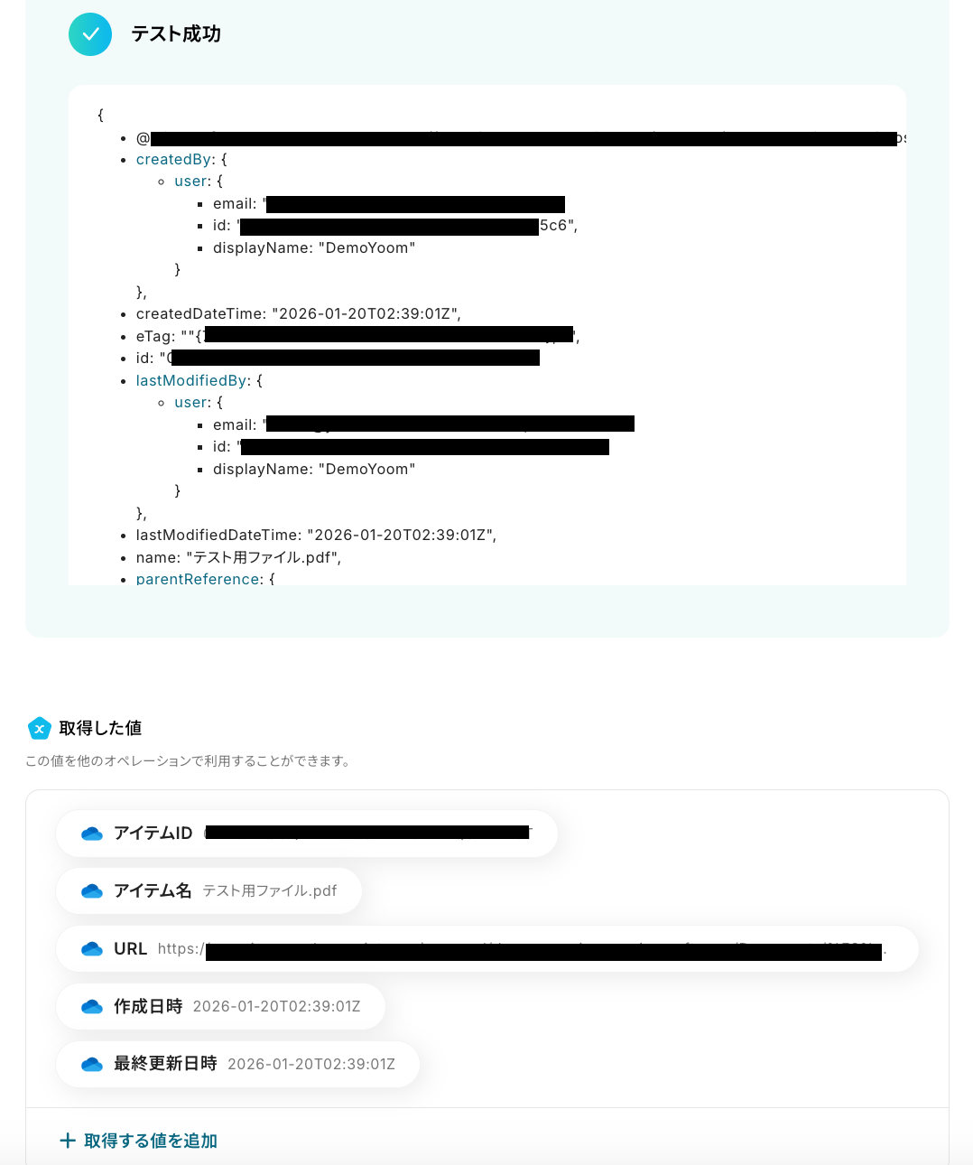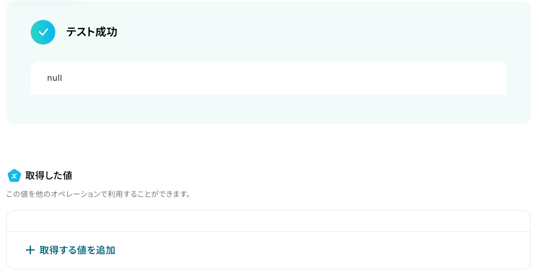 テストに成功すると、取得した値が表示されます。