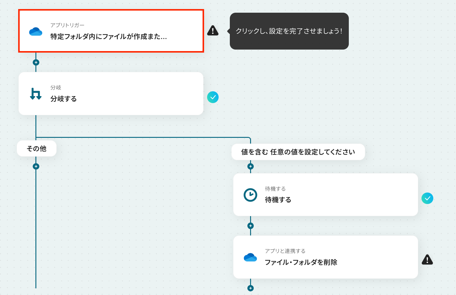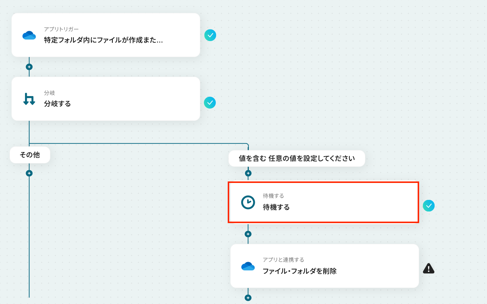 - OneDriveのトリガー設定と分岐する・待機する・OneDriveアクションの設定