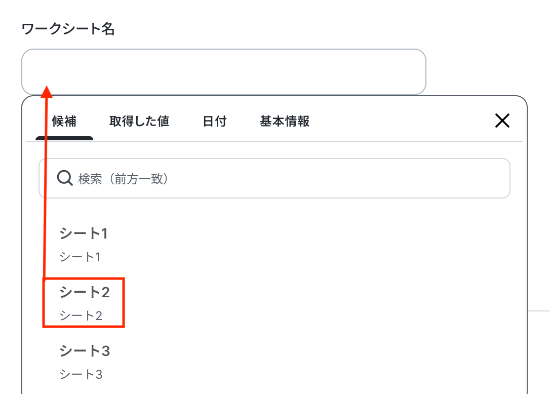 - Google スプレッドシートからレコードを取得するアクションでは、データを取得したい対象のスプレッドシートIDと、具体的なシートのタブ名を指定してください。