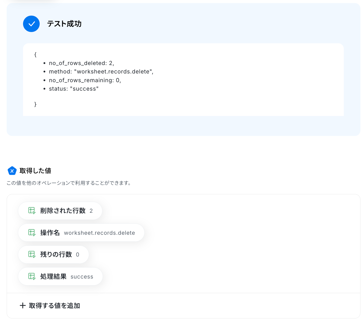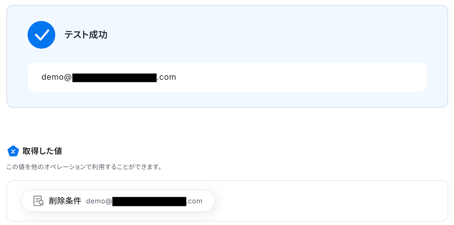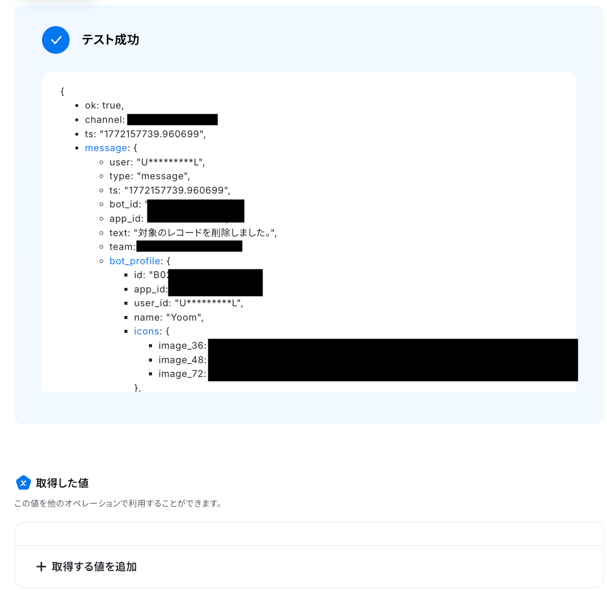 以下の取得した値は、この後のステップで利用できます。